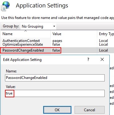 To enable the password change option, you need to run the IIS Manager console (inetmgr) on the server with the configured RD Web Access role. Go to [Server Name] –> Sites –> Default Web Site –> RDWeb –> Pages and open the Application Settings section.