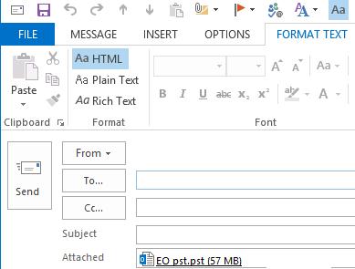 After the changes are made, you can attach larger files to your Outlook email (in our example, we have attached a 50 MB PST file).