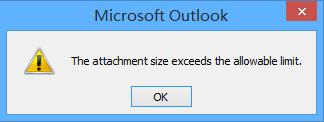 When trying to send an email larger than 20 MB using Outlook, the following error message appears:
