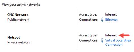 Save the changes. In the Network and Sharing Center, the type of Hotspot network will be changed to Internet. That means that this network (and all devices connected to it) now have an access to the Internet.