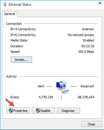 - Make sure that you have enabled sharing in the properties of your Internet connection;