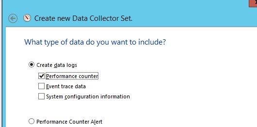 - Select the checkbox Create data logs -> Performance counter;