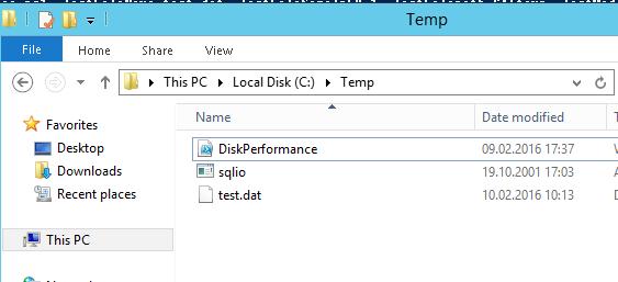 So, download the archive containing 2 files: SQLIO.exe and DiskPerformance.ps1 (disk_perf_iops.ZIP — 74 KB) and extract it to any folder.