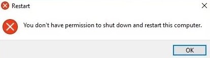 If the user does not have permissions to restart/shutdown the operating system, then an error will appear when running the following command: