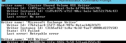 Most backup solutions for Windows use Volume Shadow Copy Service (VSS) to create backup copies of the application or service data. In some cases, the VSS service or one of its writers start to work incorrectly which results in failures during the backup. I have faced such an problem on Exchange, MSSQL and Hyper-V servers. To quickly recover VSS and its components, I use the following instruction.