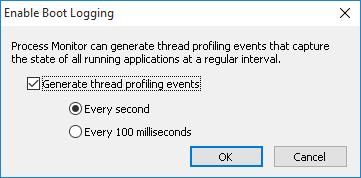 - In the next window, select Generate thread profiling events -> Every second. In this mode, procmon driver will capture the state of all processes every second?