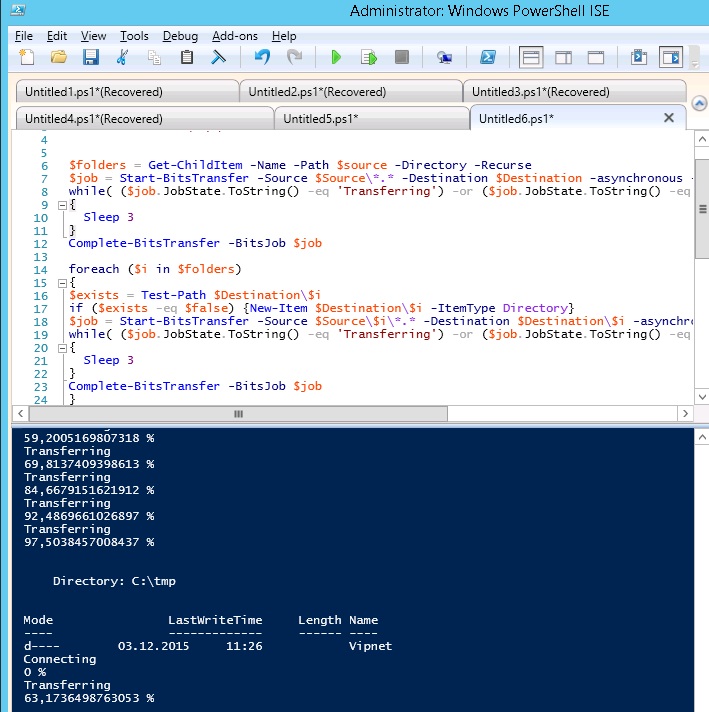 To make it easier to track the results of a BITS task, you can use a simple script, which allows to track the task progress and once every few seconds displays the download percentage on the screen. After the download is over, the script automatically converts the TMP file into the source format: