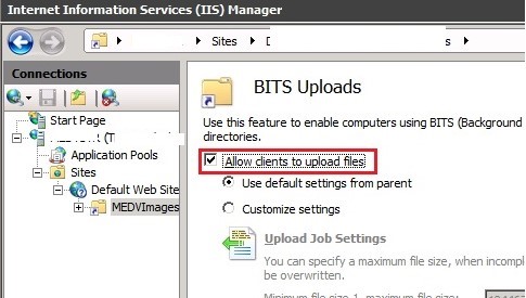 With BITS, you can not only download a file from an HTTP server, but also upload it to a remote web server. To do this, the IIS web server with the Bits Server Extension component must be installed on the target server. In the settings of the IIS virtual directory in the Bits Uploads section, you need to enable the “Allow clients to upload files” option.