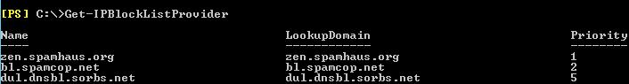 Add-IPBlockListProvider -Name zen.spamhaus.org -LookupDomain zen.spamhaus.org -AnyMatch $true -Enabled $TrueTo change the text of the NDR message returned to the sender, execute this command: