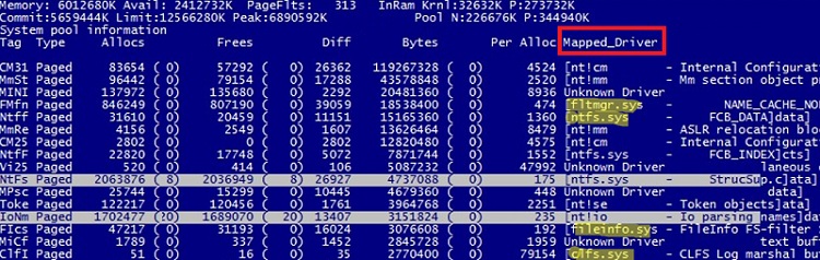 - Check the contents of the pool with the command (results will be sorted by non-paged pool usage):