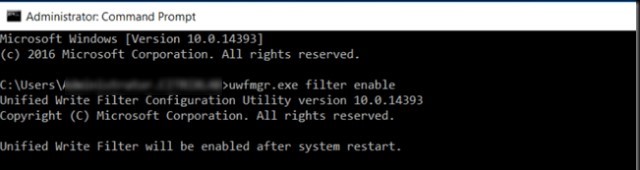 To enable UWF filter on Windows 10, run the following command and restart your computer: