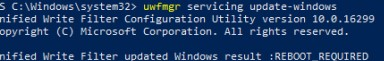 Unified Write Filter updated Windows result: REBOOT REQUIRED.