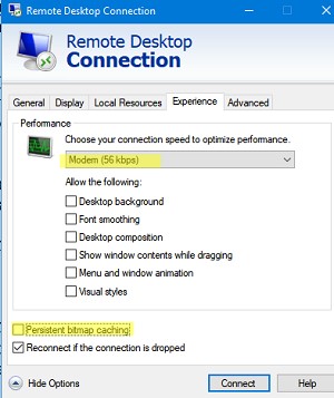 mstsc.execlient. Try using the 56kbps modem mode to optimize performance;? - Restart the Remote Desktop Service using the commands:?