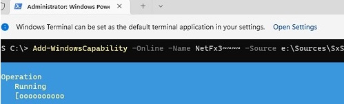 Add-WindowsCapability -Online -Name NetFx3~~~~ -Source E:\Sources\SxS